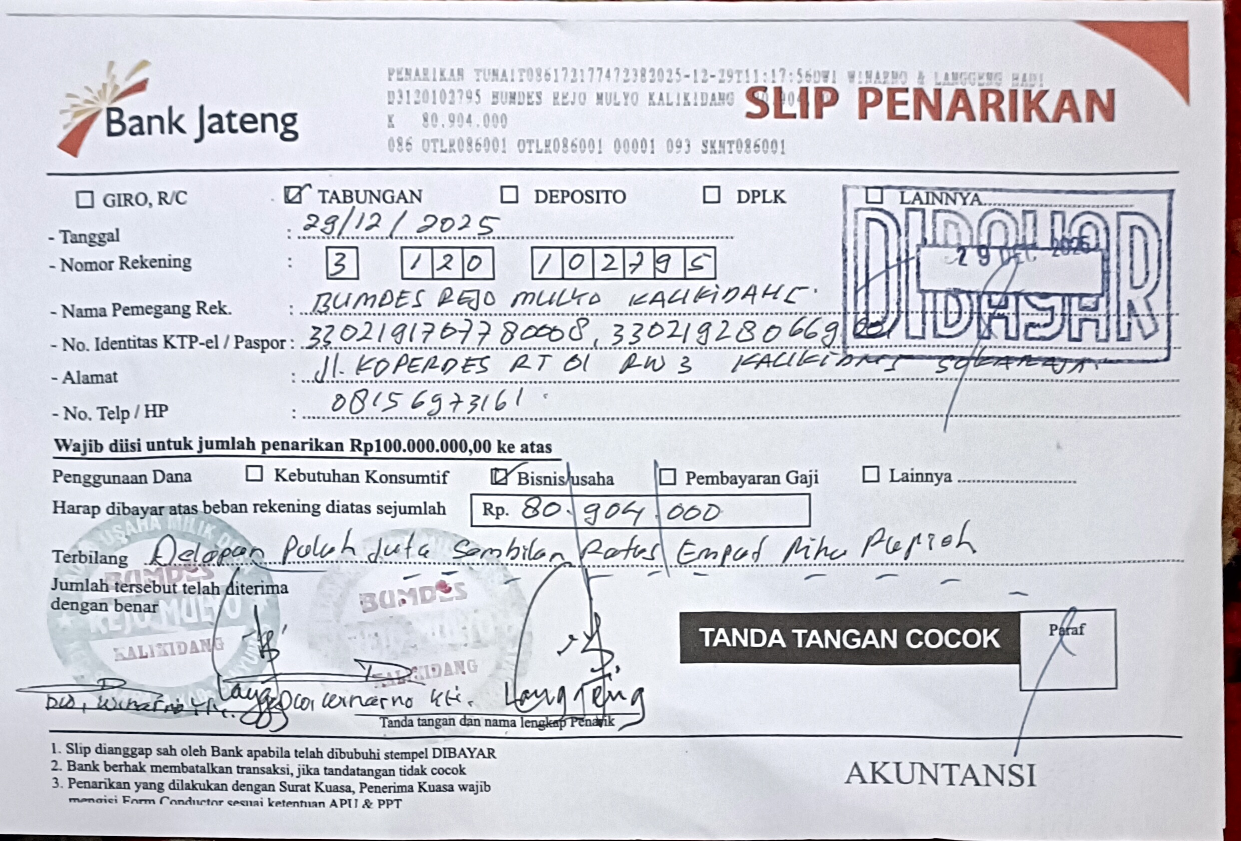 Bukti SLIP PENARIKAN dana di Bank Jateng